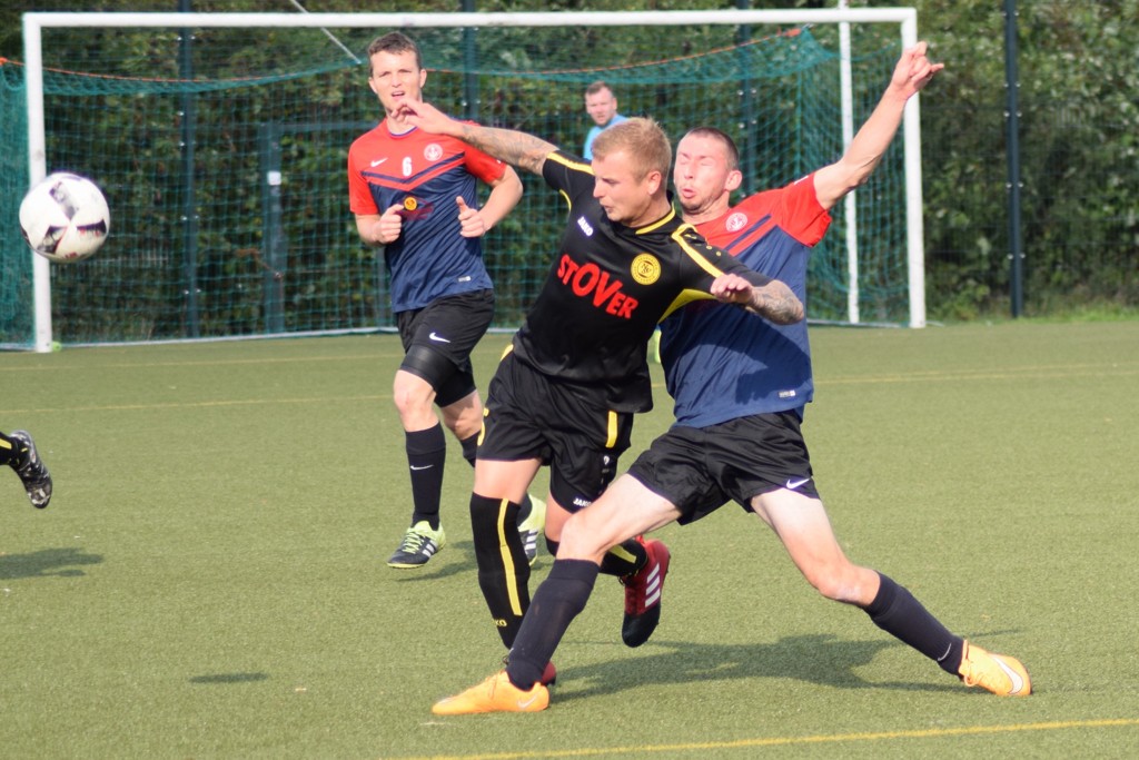 Wieder nach einer Ecke war es dann Schröder, der im Gewühl am schnellsten reagierte und den Ball aus zwölf Metern ins Netz feuerte. Die Neuburger feierten den Ausgleich und wollten jetzt gegen die angeschlagene Heimtruppe alle drei Punkte mit nach Neuburg nehmen. Das Spiel entwickelte sich jetzt zu Kick’n’Rush, beide Teams warfen alles nach Vorne.